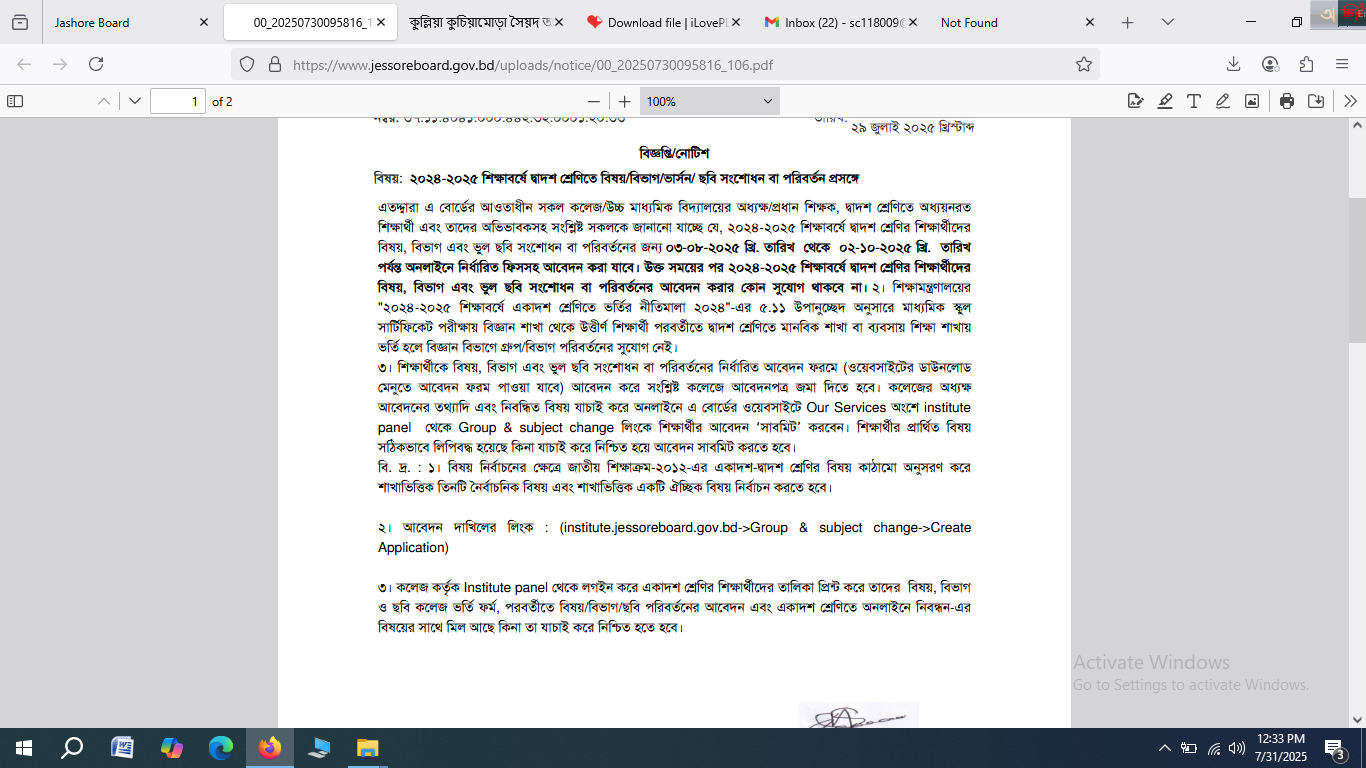 2 ২০২৪-২০২৫ ‍শিক্ষাবর্ষের দ্বাদশ শ্রেণীতে বিভাগ /বিষয়/ ভার্শন/ ছবি পরিবর্তন প্রসঙ্গে। 07-09-2023